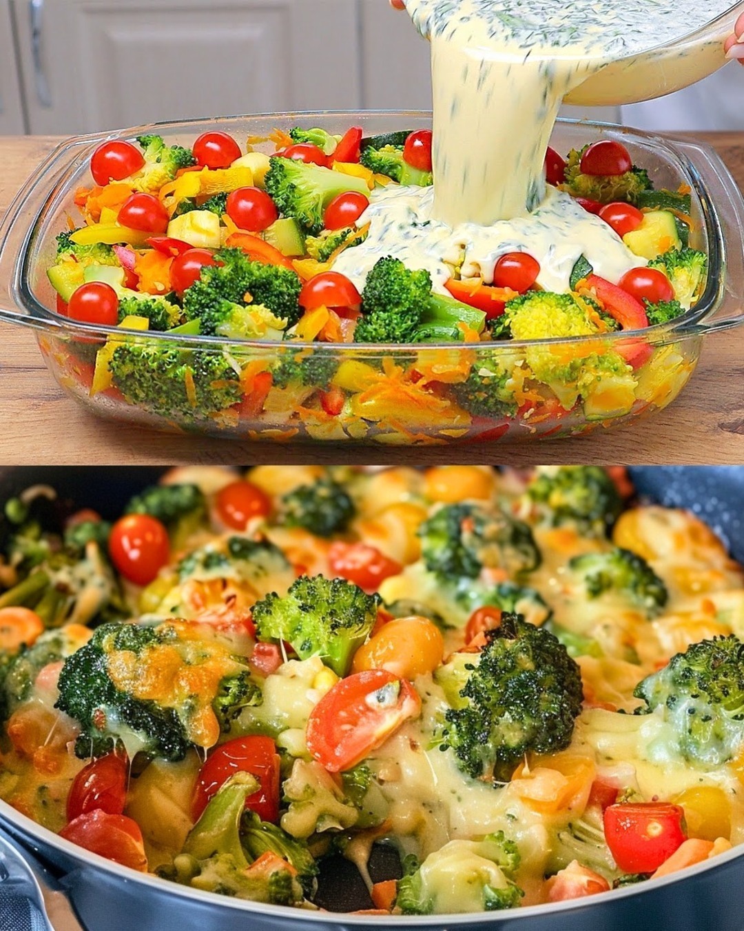 No supper would be complete without this healthy and flavorful Creamy Baked Broccoli, Tomatoes, and Kale. This dish is both healthy and filling thanks to the blend of crisp broccoli, delicate baby kale, and juicy tomatoes in a velvety sauce. Everyone in the family is likely to love this meal once they see the melted mozzarella cheese on top. Whether you serve it as a main dish or a side, it’s a great way to eat your veggies. The time required for preparation is twenty minutes. Ten minutes in the oven Time Required: 45 minutes What you need: florets from one big broccoli Extra virgin olive oil A little bunch of young kale chopped onion, one small one 7 minced garlic cloves, tiny 12 cherry or grape tomatoes, cut in half, or 12 tiny tomatoes The butter knob As needed season with salt quarter teaspoon of thyme A 150 milliliter bottle of lotion flour, measuring one tablespoon Cheese made with crushed mozzarella