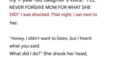 I heard my 9-year-old daughter whisper into the phone, “I’ll never forgive Mom for what she did.”