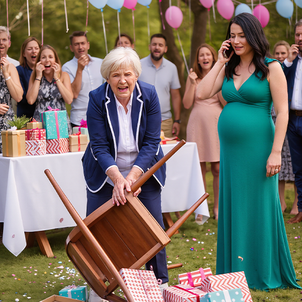 The party was reaching its peak when a delivery man appeared with a giant golden basket wrapped in shimmering plastic. It sparkled under the sun like something out of a commercial — designer baby clothes, silver rattles, monogrammed blankets. The card read: With love, Sophia.