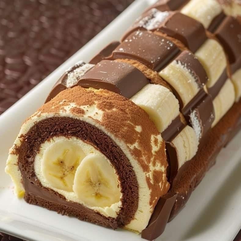 banana-filled, chocolate-covered roulade