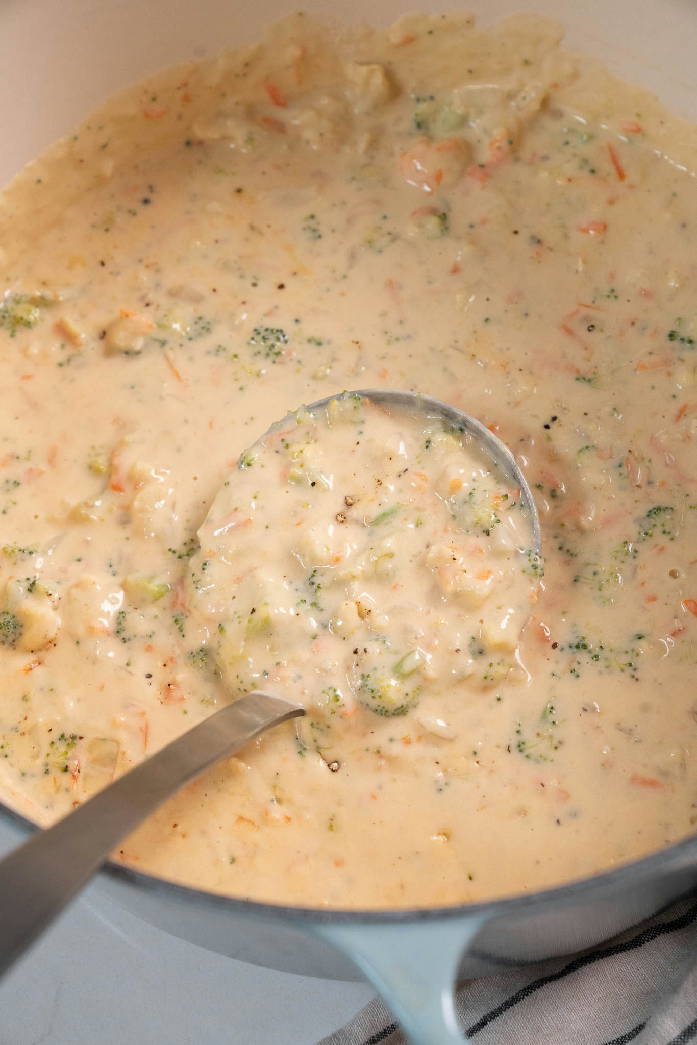 This rich and comforting soup is the perfect blend of tender vegetables in a velvety, sharp cheddar cheese sauce. It’s a hearty and satisfying meal for any day of the week.