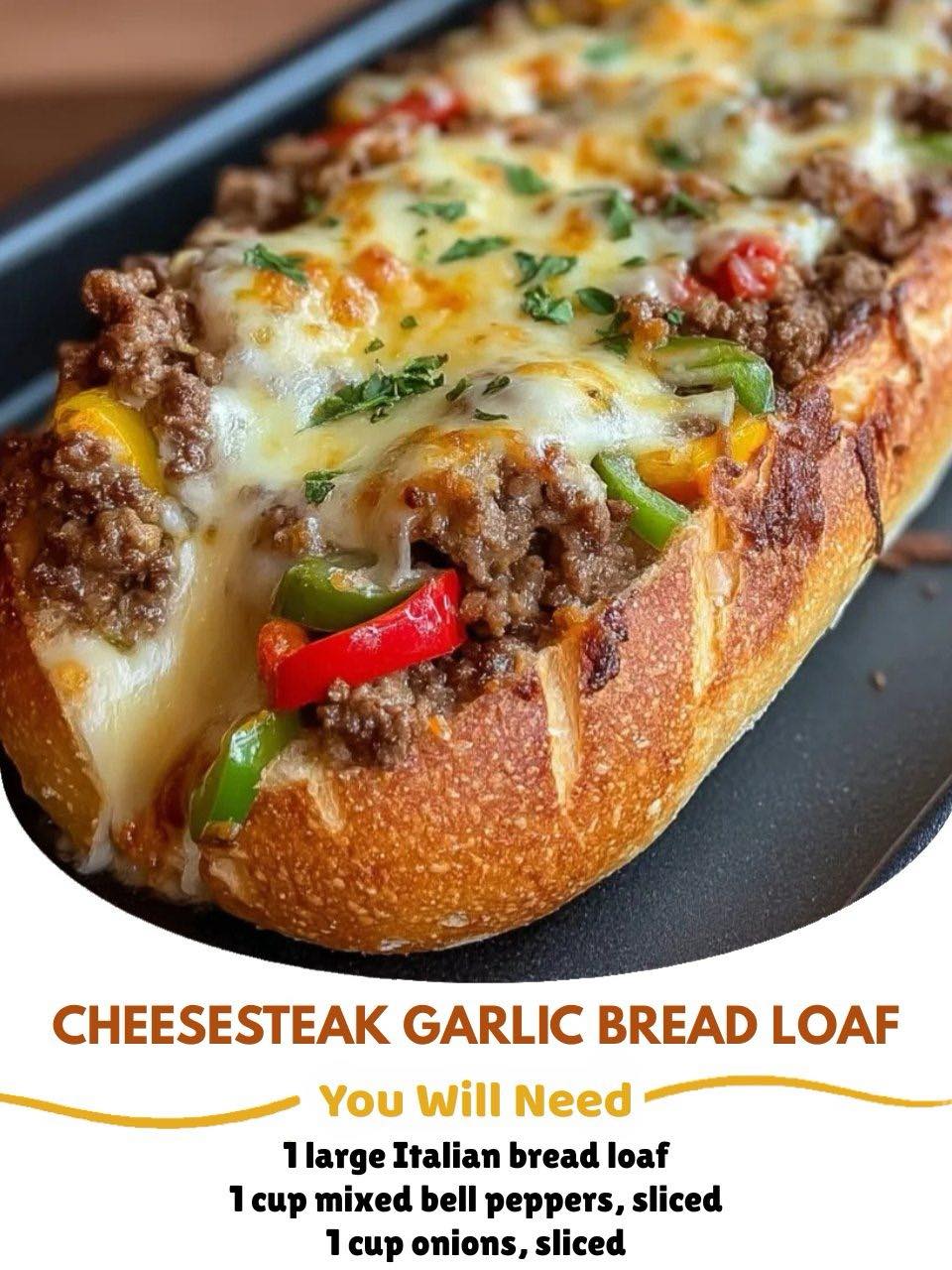 This cheesesteak-stuffed garlic bread loaf transforms a Philadelphia classic into a show-stopping shareable that’s perfect for game days or casual gatherings. The crispy exterior of garlic-buttered Italian bread gives way to a melty interior packed with seasoned beef, caramelized vegetables, and stretchy provolone cheese.