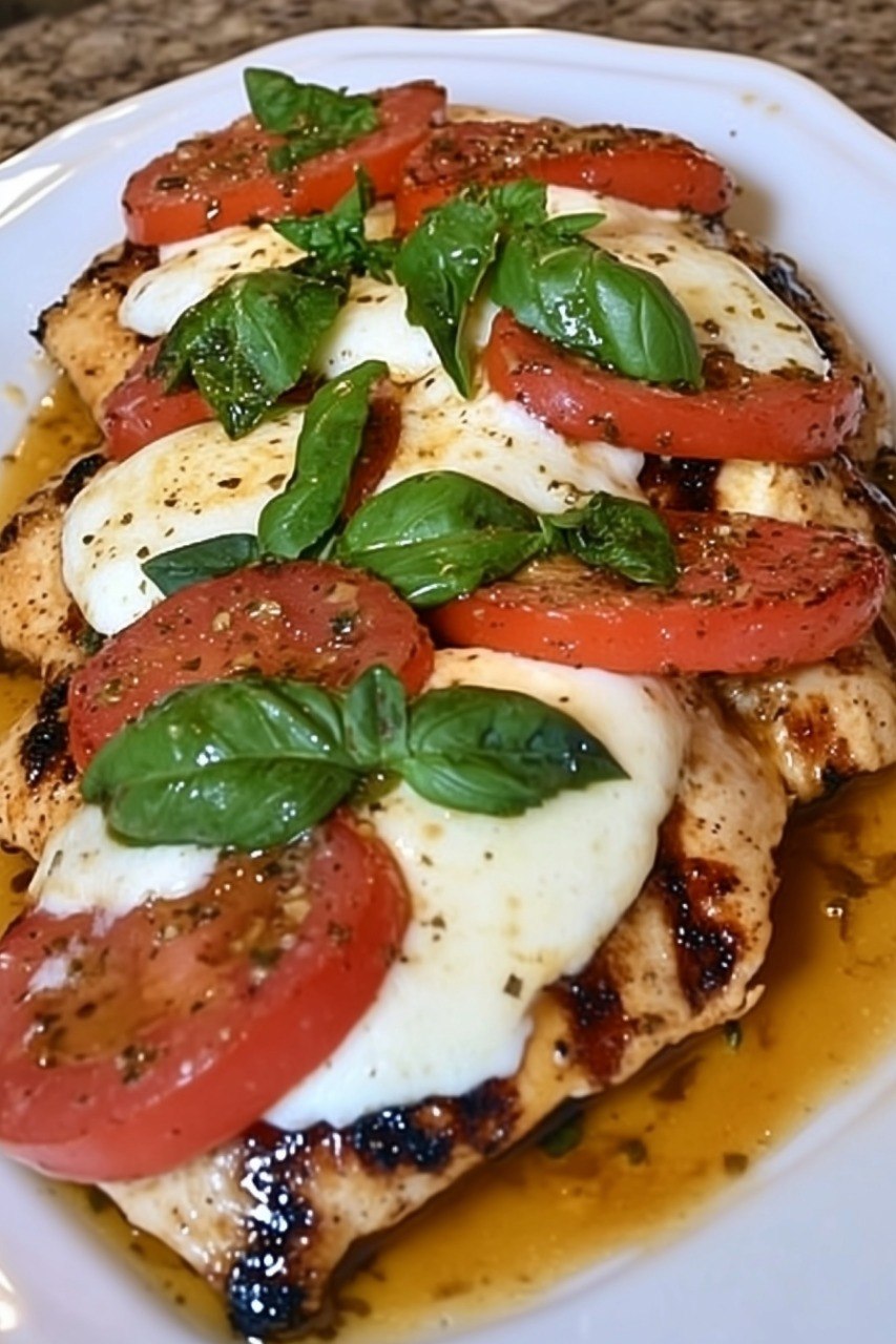 This recipe transforms convenient frozen grilled chicken into an elegant, restaurant-quality dish. Topped with melted fresh mozzarella, juicy tomatoes, a sweet balsamic glaze, and fragrant basil, it’s a simple yet impressive meal.