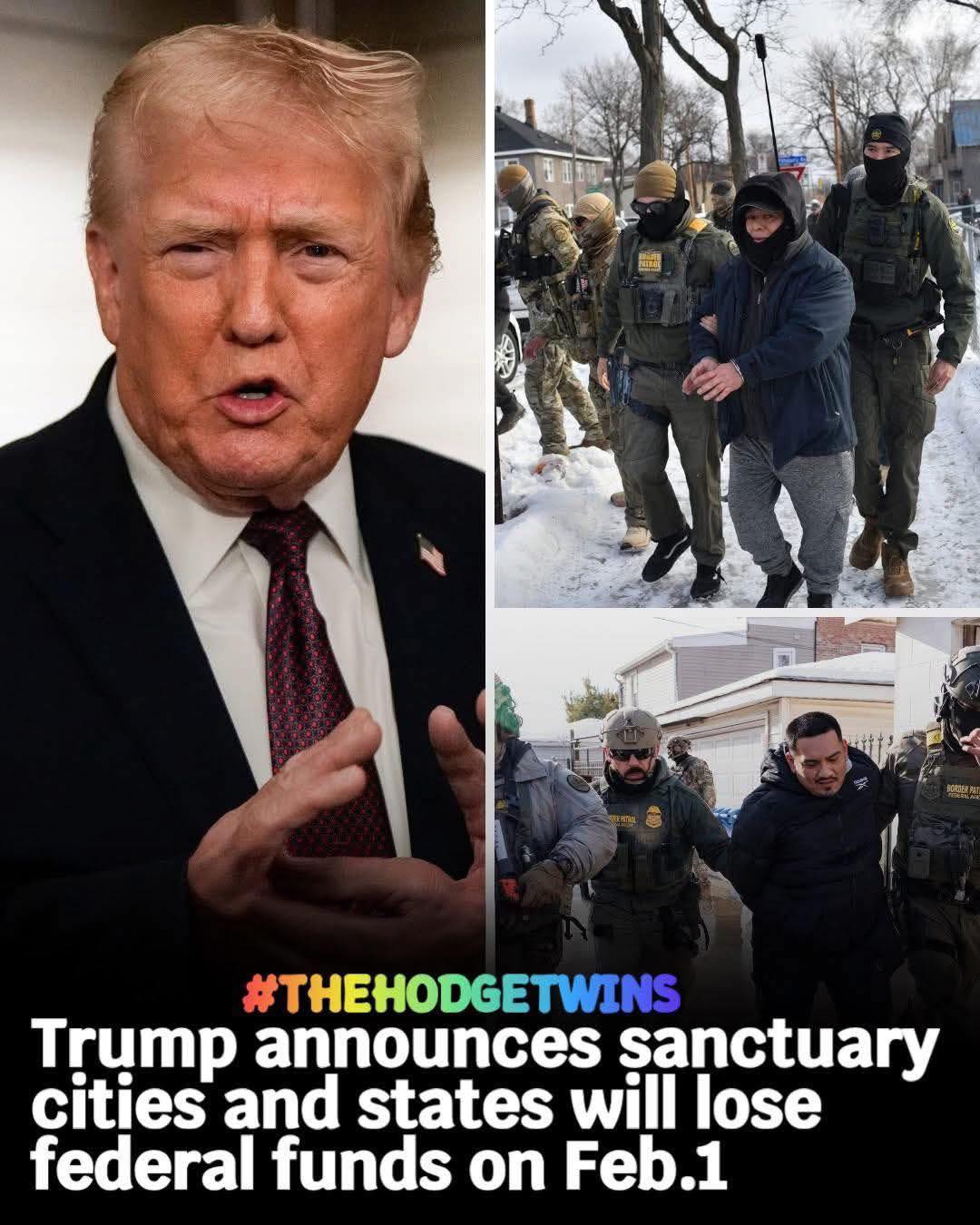 The presence of law enforcement officers suggests a direct action related to the announcement, possibly hinting at a crackdown in those sanctuary areas. The accompanying imagery evokes a sense of urgency and action.
