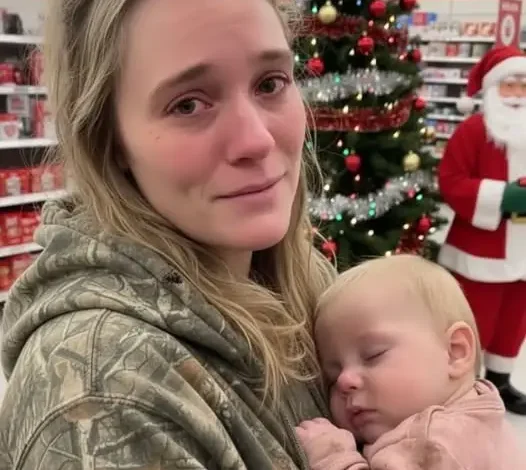 Early 30s, maybe. Hair in a messy bun, hoodie that had been washed a hundred times, cheap leggings, old sneakers. She had a baby strapped to her chest in a soft wrap, his cheek mashed against her collarbone.