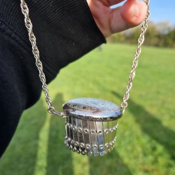 It looks like you’ve shared a picture of a unique object—a small pendant or decorative item with intricate detailing and a chain. Here are some thoughts and ideas about it: