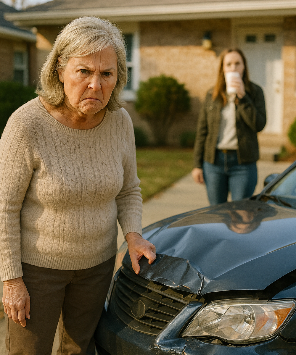 That morning, I woke up to a loud crash outside. My heart skipped a beat. Running outside, I saw my car—my old, faithful car—dented, headlights shattered, and the side mirror lying broken on the driveway.