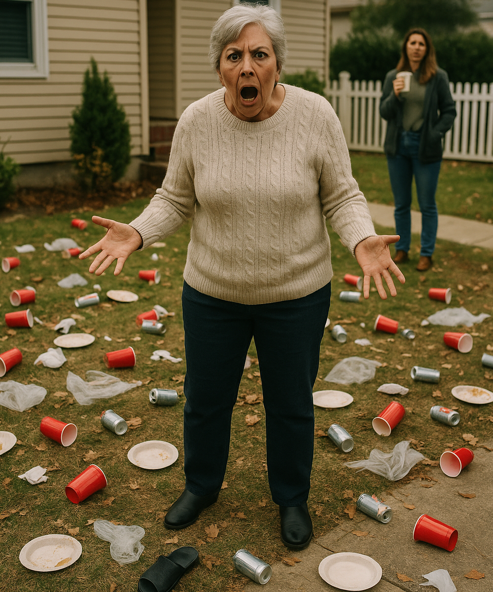 Red cups, crumpled paper plates, empty cans, even a stray sandal—my yard looked like a battlefield. Not theirs, mine. My sanctuary. I just stood there, coffee forgotten, staring in disbelief.
