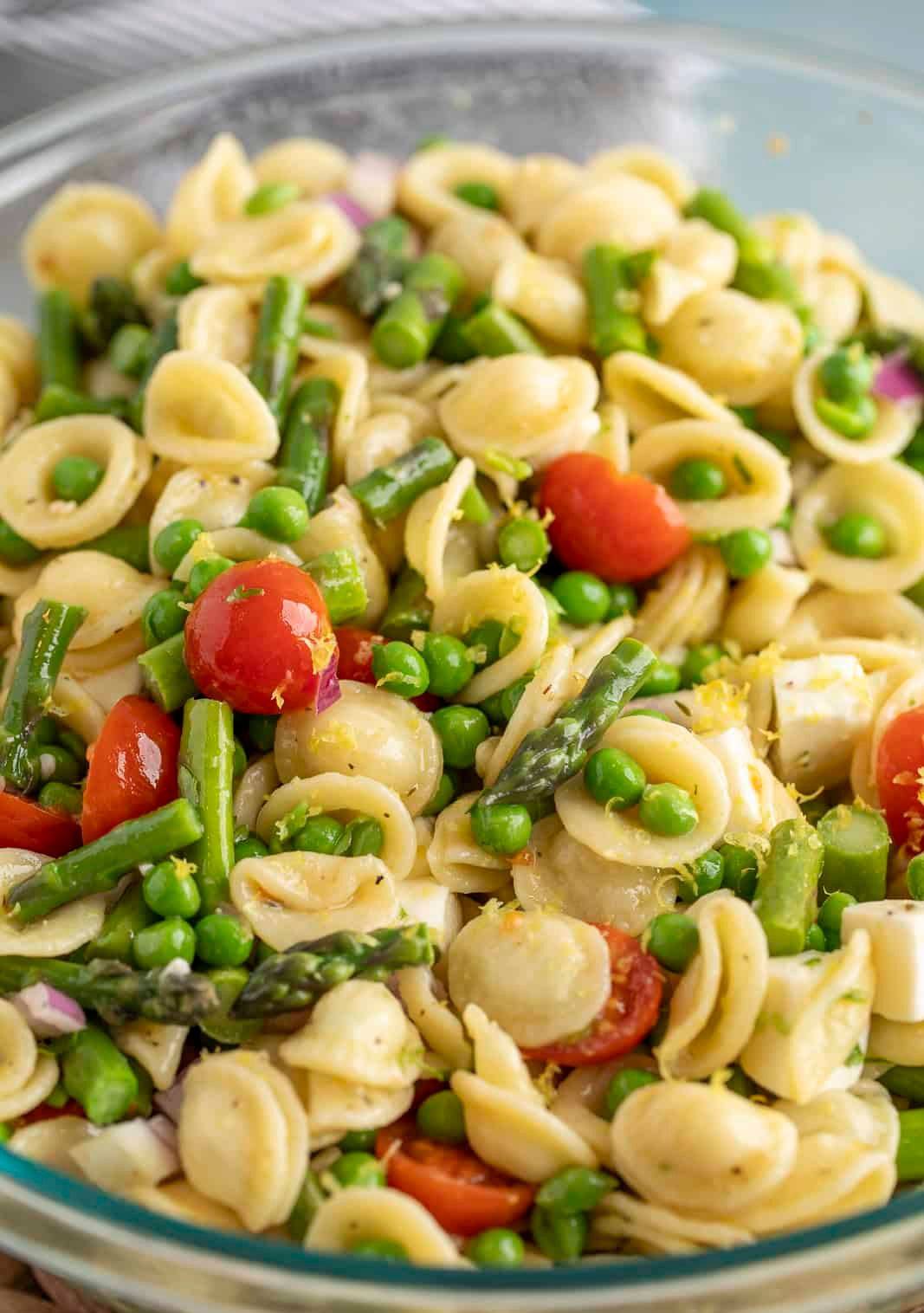 This vibrant and fresh pasta salad is a celebration of summer! Tender orecchiette pasta is tossed with crisp asparagus, sweet peas, juicy cherry tomatoes, and creamy mozzarella, all brought together with a bright, zesty lemon vinaigrette. It’s an incredibly easy, make-ahead dish that’s perfect for picnics, potlucks, and BBQs.