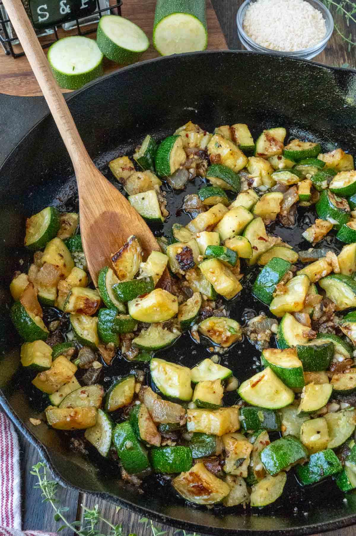 This quick and easy side dish is a celebration of simple, fresh flavors. Tender zucchini and sweet, caramelized onions are elevated with aromatic garlic, fresh herbs, and a savory finish of parmesan. It’s the perfect versatile companion to weeknight dinners and special occasion meals alike.