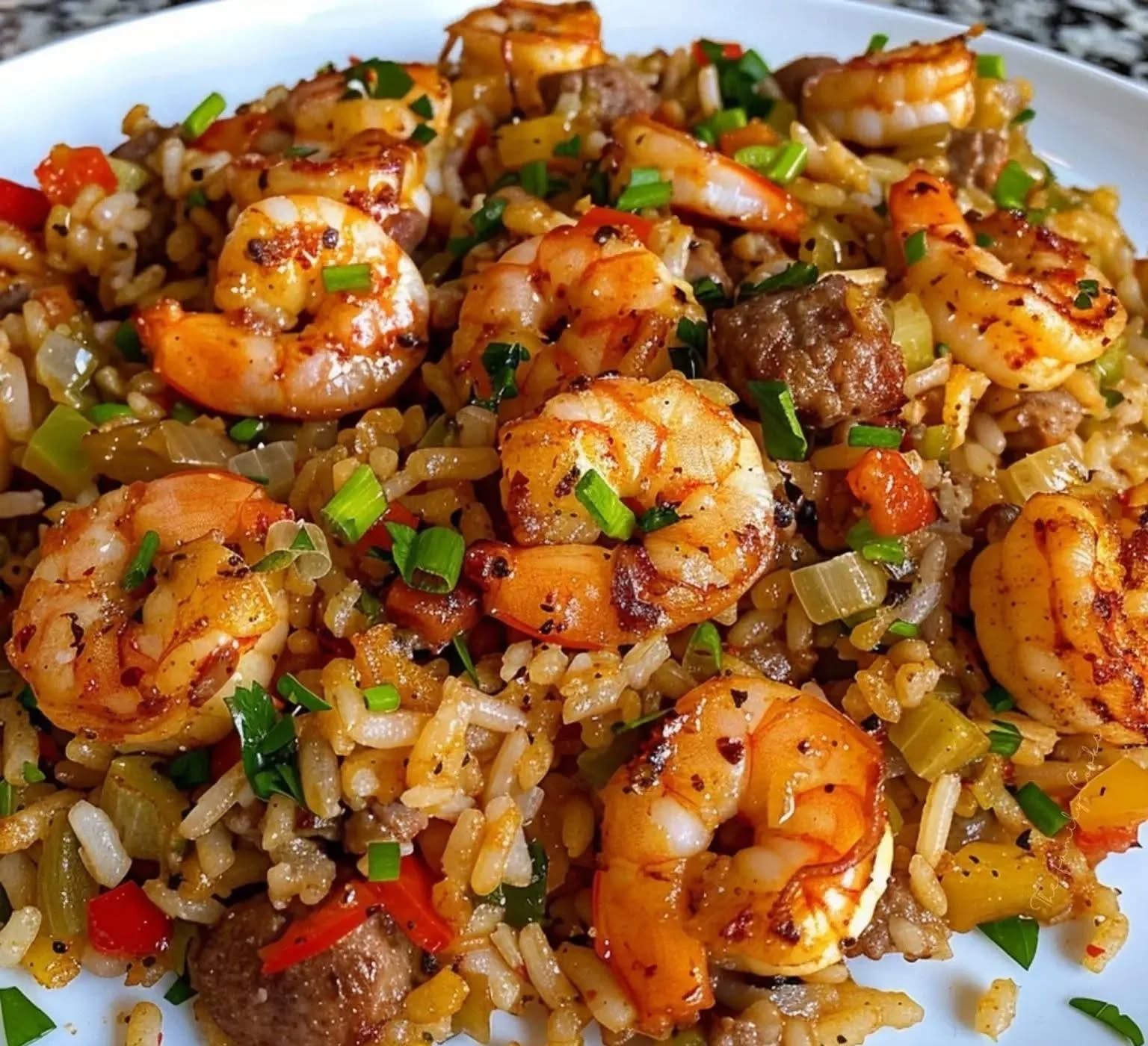 A hearty, flavor-packed jambalaya-style dish with seasoned meats, tender shrimp, and aromatic spices. Perfect for a family dinner or gatherings!