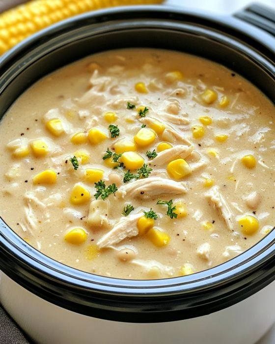 Enjoy a comforting, hearty dish perfect for chilly evenings with this creamy white chicken chili. This Southwestern-inspired recipe blends spices, tender chicken, and sweet corn for a delightful flavor.