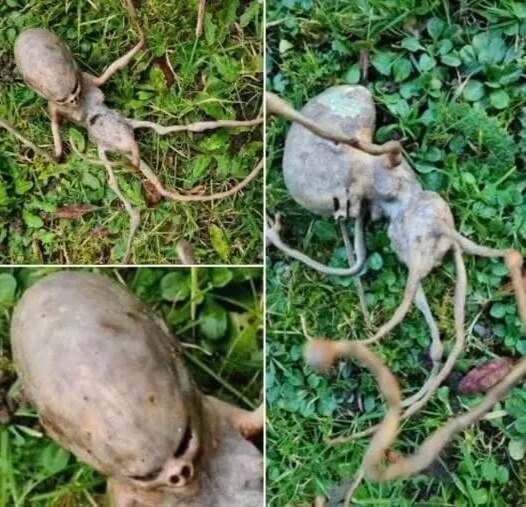 The homeowner, initially stepping out for a routine check of her garden, found herself paralyzed by the sight of a biological anomaly. To her eyes, the object was “downright alien.” It lacked the familiar symmetry of local flora and the recognizable anatomy of regional fauna. Instead, it possessed a grotesque, elongated structure that mimicked a skeletal skull, perched atop a spindly, narrow torso. Most unsettling were the appendages—long, cane-like limbs that jutted out at awkward angles where one would expect arms or legs. It was a monochromatic, desiccated-looking thing, appearing both organic and metallic under the shifting morning light.