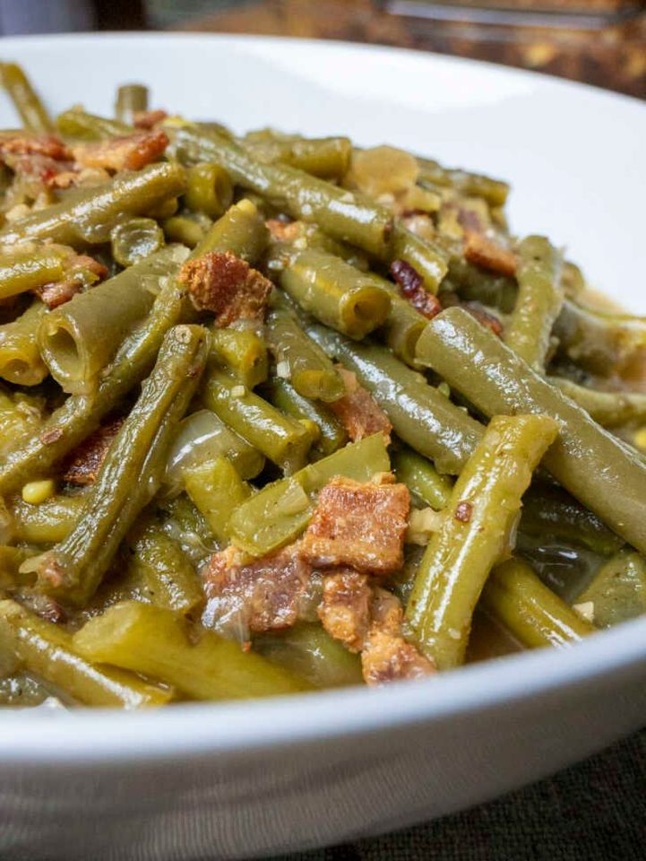 These aren’t your average crisp-tender green beans. Simmered low and slow with bacon and onion, they become incredibly tender, flavorful, and soulfully Southern.