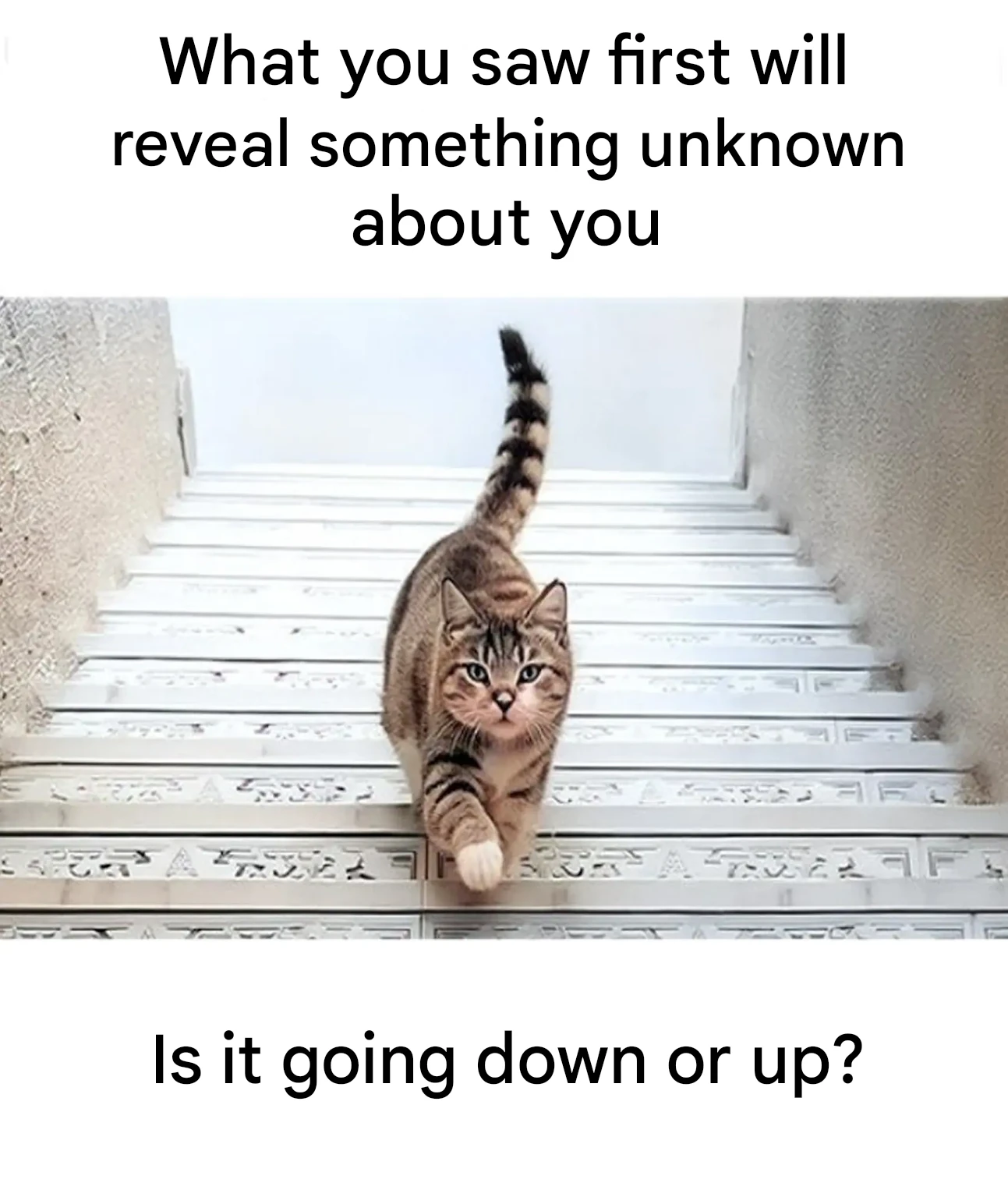 Conversely, if your gaze is first drawn to a cat coming down, this often reflects a keen eye for detail. You are one of those people who notice the smallest stitch on a garment, the subtle nuance of a perfume, or the atmosphere of a room even before entering. This sensitivity to detail makes you attentive, curious, and always ready to understand what others miss.