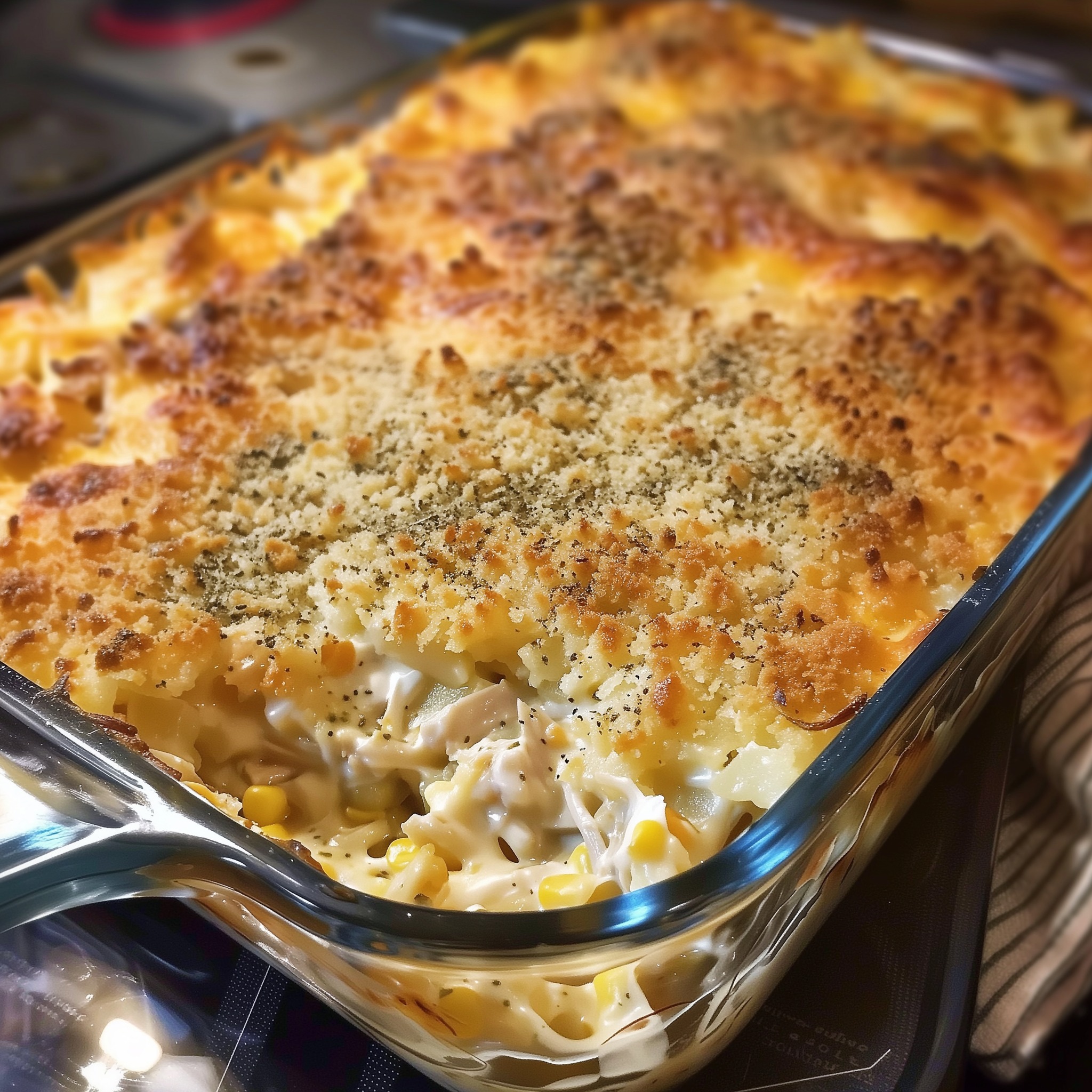 This creamy, cheesy, and satisfying casserole is the ultimate comfort food. With a crispy, buttery cornflake topping and a rich, flavorful base, it’s perfect for a family dinner, potluck, or holiday brunch.