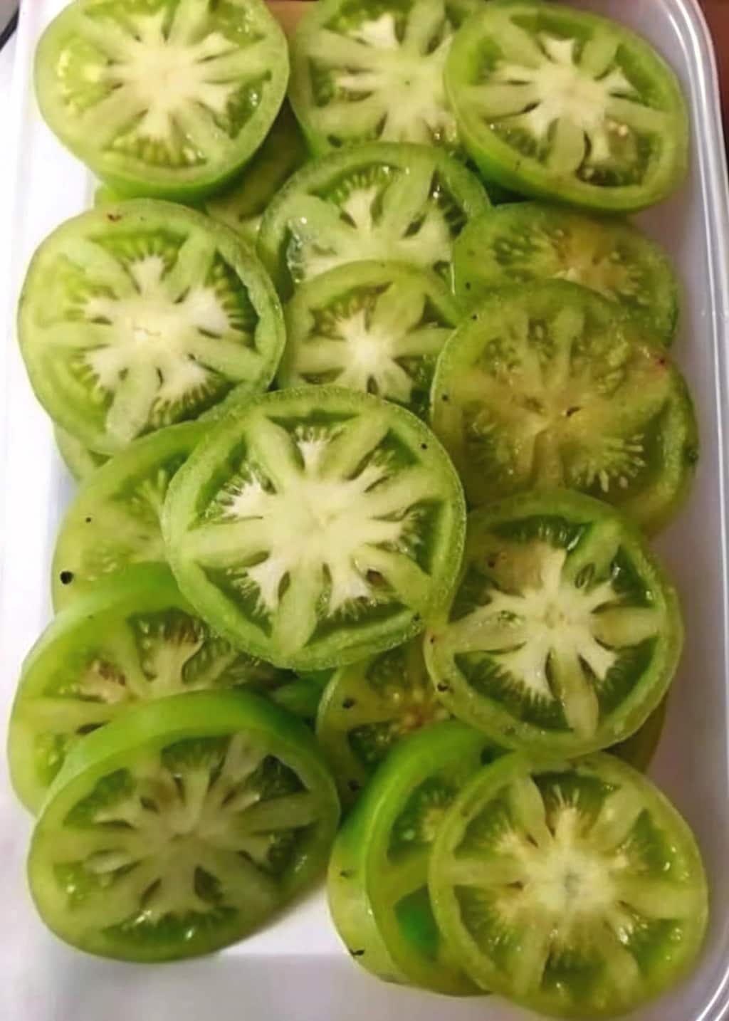 - Firm green tomatoes (not heirloom)